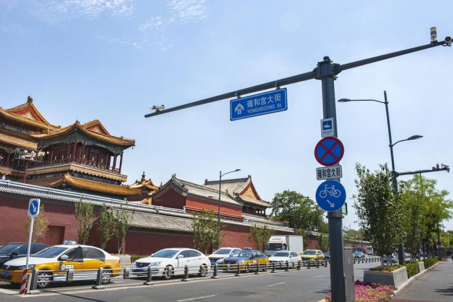 “改造后的雍和宮大街之所以看起來清爽,是因為街道上的桿體設施明顯減少了。”據許欣介紹,2019年,東城區將雍和宮大街作為北京市“多桿合一”的試點街,正式開啟對雍和宮大街900 多米路段上200 多根桿件的整合。