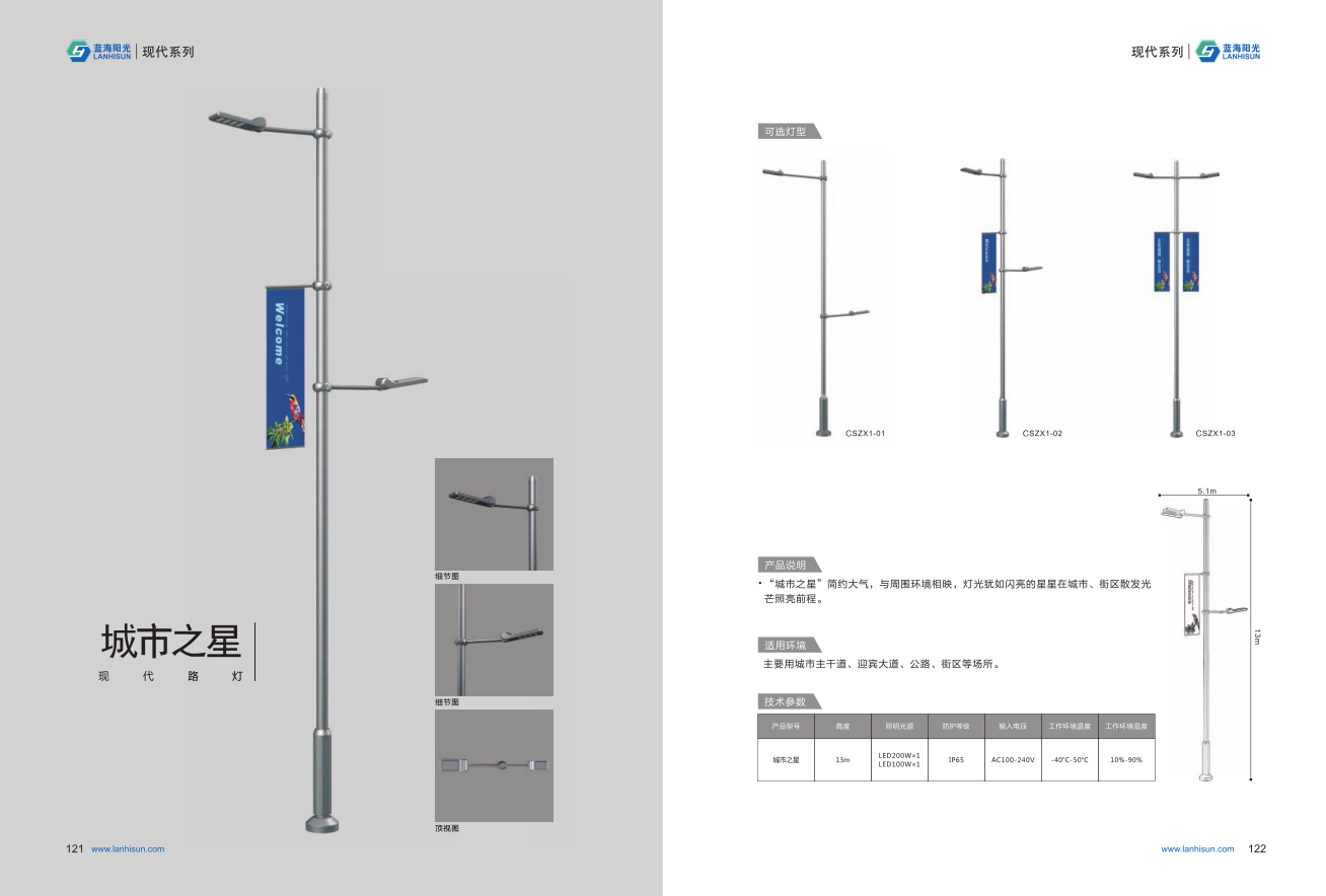 1、高度為6-16米; 2、光源為2組LED光源,色溫2500-6500K,每個光源功率為60-300W; 3、LED驅(qū)動電源壽命可達(dá)五年; 4、整體熱鍍鋅噴塑,保證燈桿15年不生銹; 5、可以根據(jù)使用地區(qū)的地域文化、產(chǎn)業(yè)特點(diǎn)等進(jìn)行文化定制;